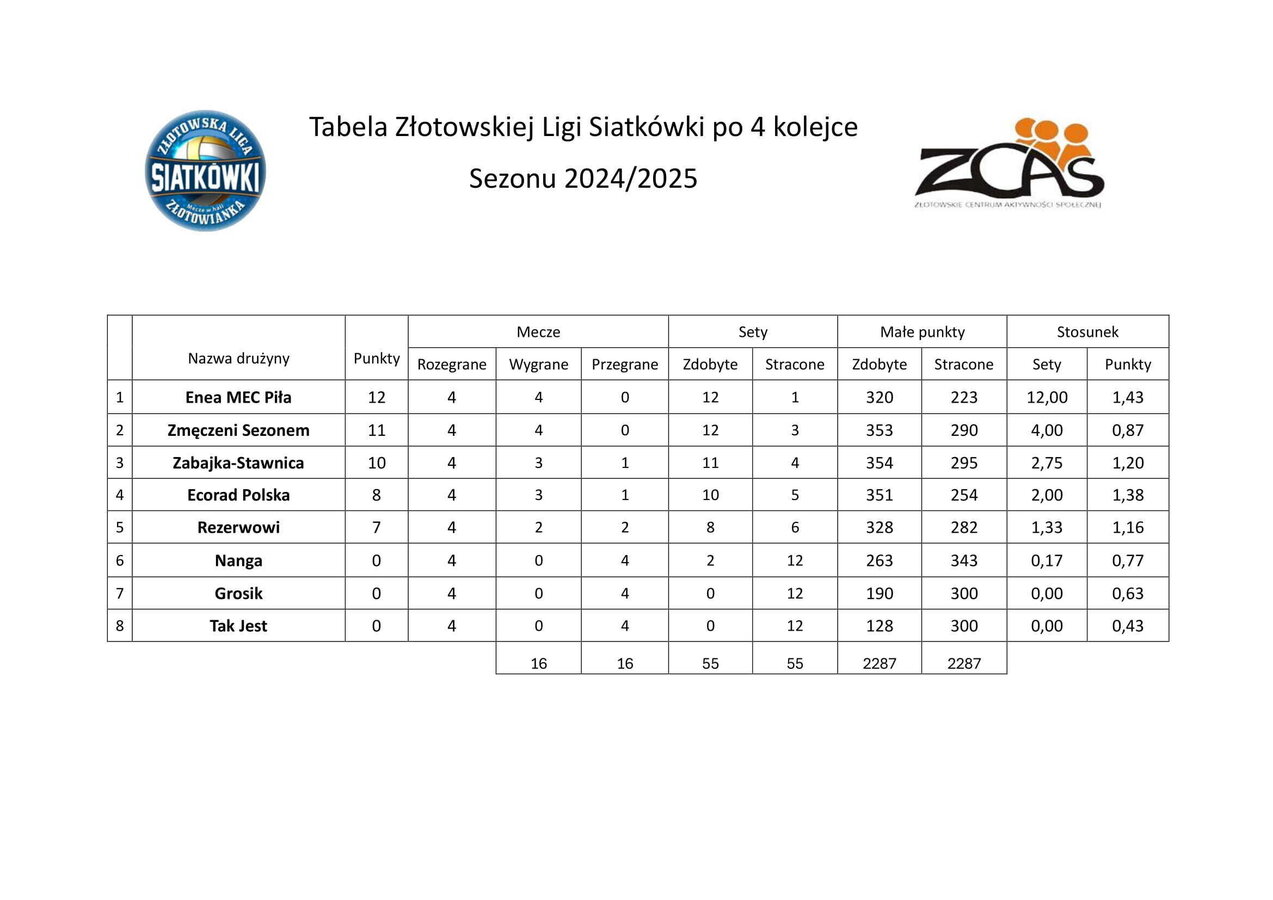 4. kolejka Złotowskiej Ligi Siatkówki Poniżej prezentujemy wyniki po 4. kolejce Złotowskiej Ligi Siatkówki.