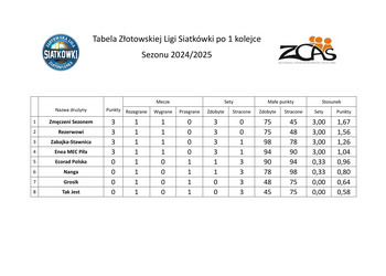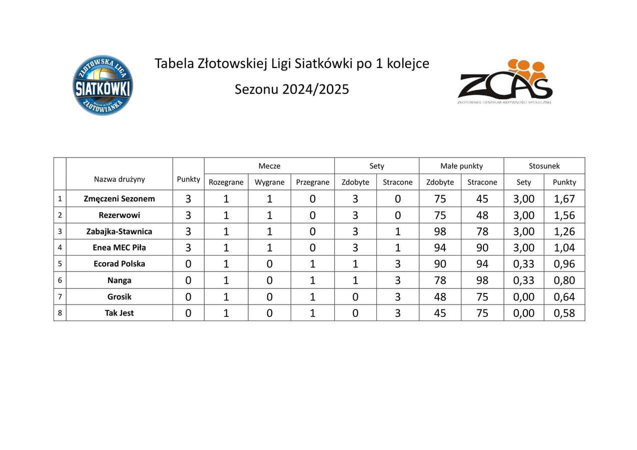 Tabela Złotowskiej Ligi Siatkówki po 1 kolejce Sezonu 2024/2025 Prezentujemy wyniki po pierwszej kolejce rozgrywek!