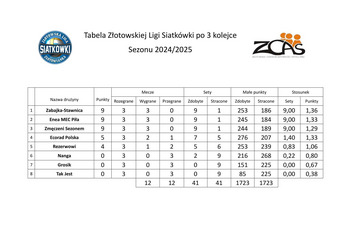 Wyniki 3 kolejki Ligi Siatkówki Prezentujemy wyniki po 3 kolejce Złotowskiej Ligi Siatkówki 2024/2025!