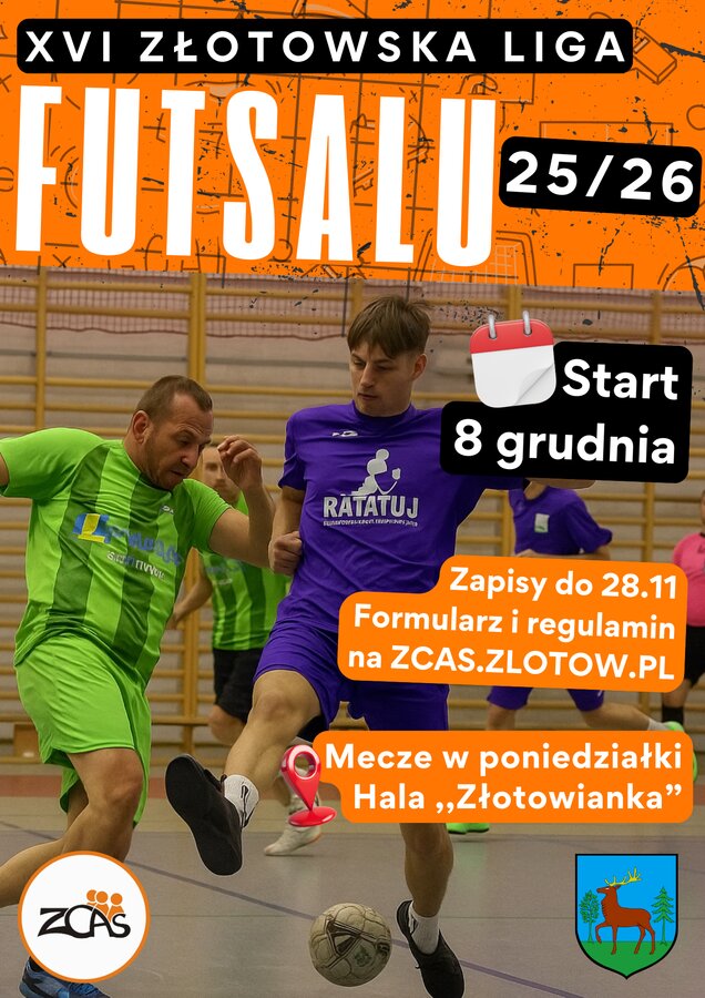 Ruszamy z zapisami do Złotowskiej Ligi Futsalu 2025/2026! Zachęcamy do zgłaszania drużyn za pośrednictwem załączonego poniżej. Dokument prosimy wypełnić, a następnie odesłać w pliku PDF lub skanem na adres: sport.zcas@zlotow.pl