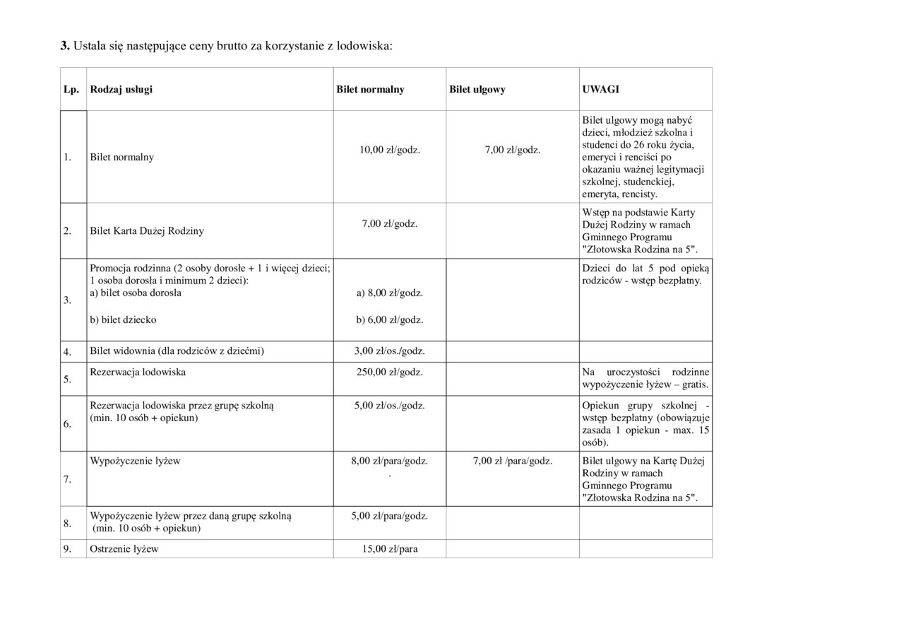- wypożyczenie łyżew - 8,00 zł/para/godz.