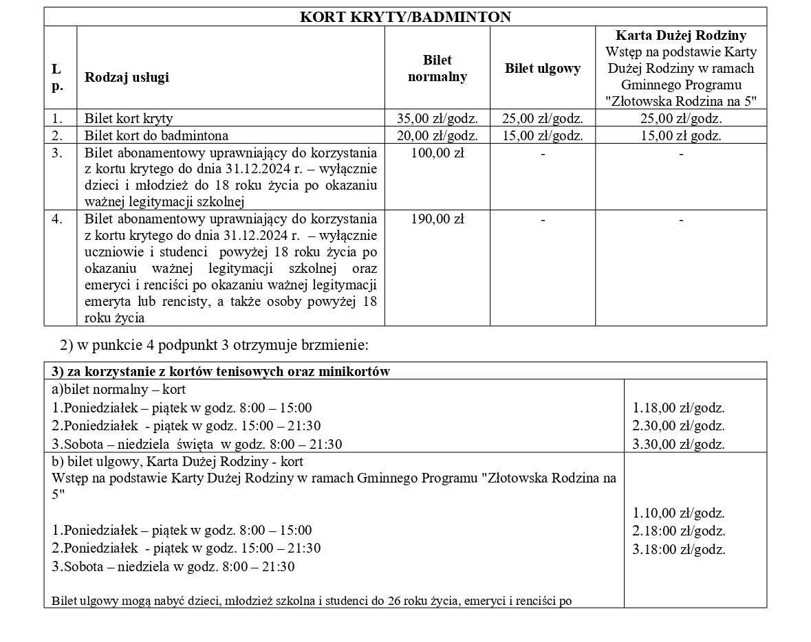Kwoty na rok 2025 zostaną wprowadzone w kwietniowym zarządzeniu Burmistrza Miasta Złotowa. Odkryte korty tenisowe będą dostępne od 31 marca, od godziny 15:00. Do 4 kwietnia włącznie, udostępniamy je bezpłatnie, abyście mogli Państwo przetestować przygotowaną nawierzchnię. W cenniku aplikacji pojawiła się pozycja "Darmowa rezerwacja - start sezonu!", która będzie aktywna do piątku włącznie. Po tym czasie konieczne będzie wykupienie biletów lub karnetu.