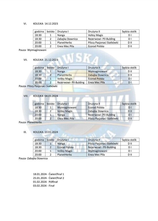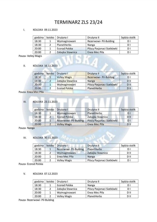 ZŁOTOWSKA LIGA SIATKÓWKI SEZON 2023/2024